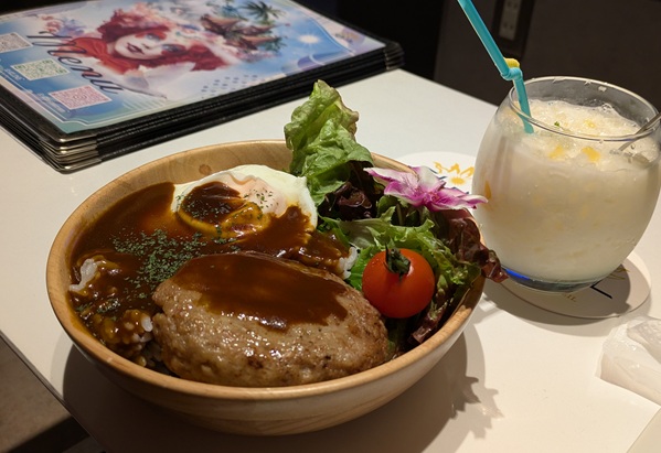 最初の1時間はご飯タイム。一人ワンフード、ワンドリンク制。メニューはどれも映える。お値段は、高すぎず、安すぎず。