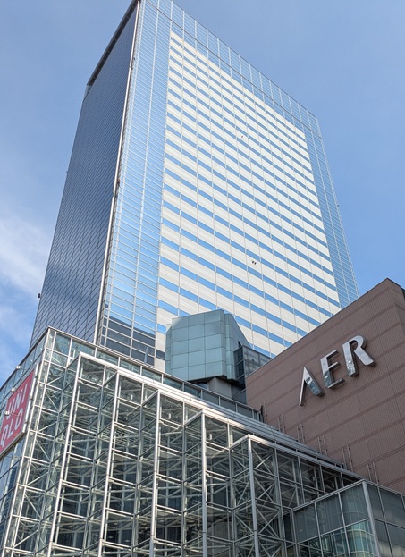 駅の2階から、そのまま歩道橋みたいなのを使ってAERに行ける。しかし、そこから31階に行くエレベーターが見当たらない!ウロウロしてたら「展望テラスへはオフィスエレベーターを使ってください」みたいな看板を見つけた。オフィスエレベーターってどこ!?とりあえず1階まで降りて、いったん外に出る。