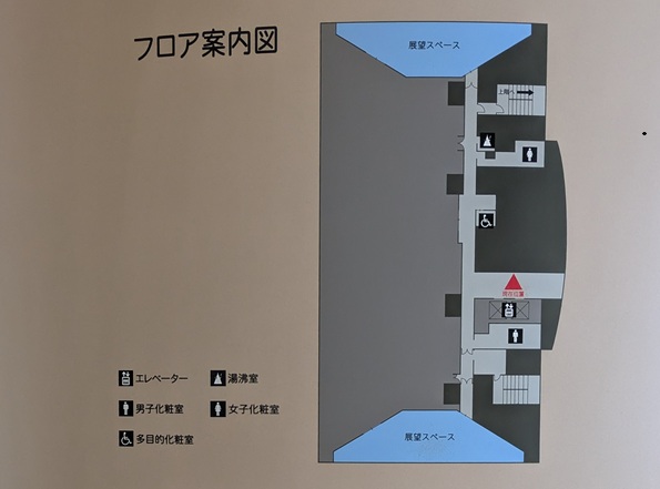 エレベーター降りると、展望台はエレベーターホール挟んで、東側と西側にあるらしい。