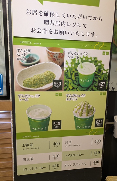 その後、カウンターで注文。【ずんだシェイクショート】427円。