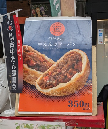仙台には【牛タンカレーパン】というのがあるらしい。まぁカレーパンなんやろけど、中に牛タンが入ってるんやろな、仙台やもん。今回は「脱牛タン」の旅やけど、これくらいは許されるやろ。なんならおみやげで買って帰りたい。