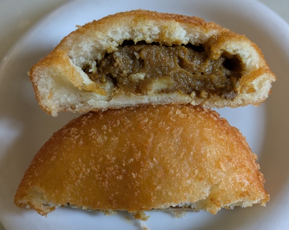 半分にしてみる。うん、普通のカレーパン。でも利久のカレーパンやで。普通のはずないやん。