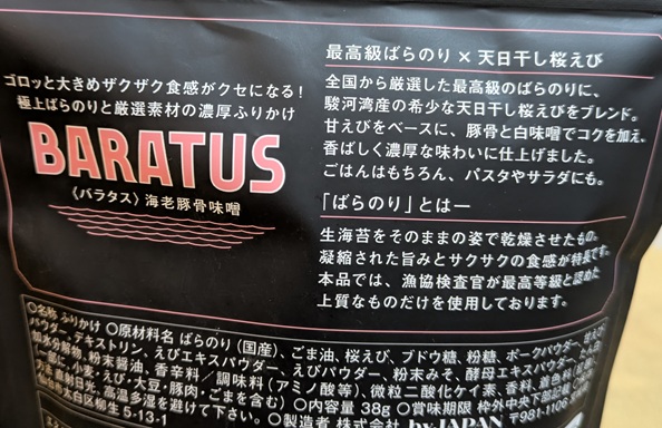 しかも【FURIKAKE バラッツ海老豚骨味噌】798円なんていう「ふりかけ」みたいなのもある。これは買わないと!