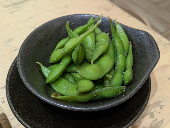 続いて枝豆も。表面にたっぷり塩振ってる。