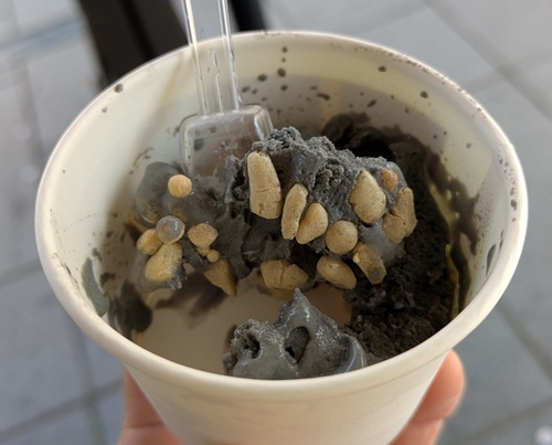真っ黒なアイスは、あんまり映えない。インスタしてる人には不向きやな。
