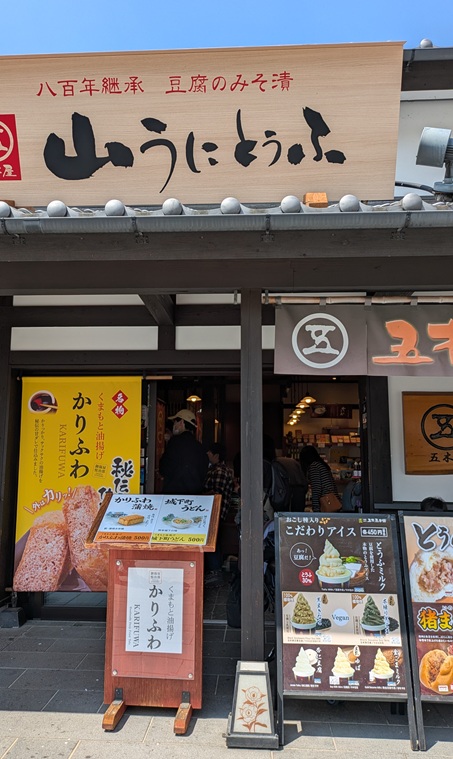 改めてお店の看板見たら、「豆腐の味噌漬け」「山うにとうふ」「くまもと油揚げ」??