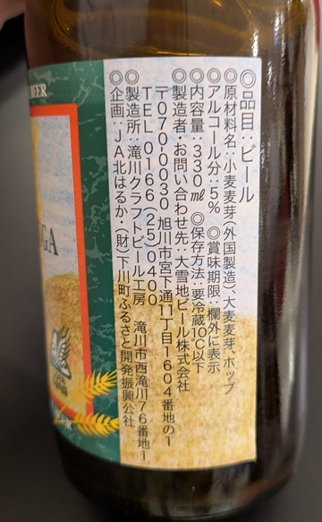 製造は、大雪地ビール㈱。 ネットで調べながらいただく。