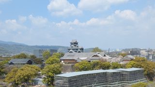 市役所の地下食堂でランチの後は、エレベーターで『熊本市役所展望フロア』へ行ってみよう!熊本城が目の前に見える。まだまだ復興途中みたいやけど、桜もキレイに咲いてる🌸夜景もキレイやろなぁ~